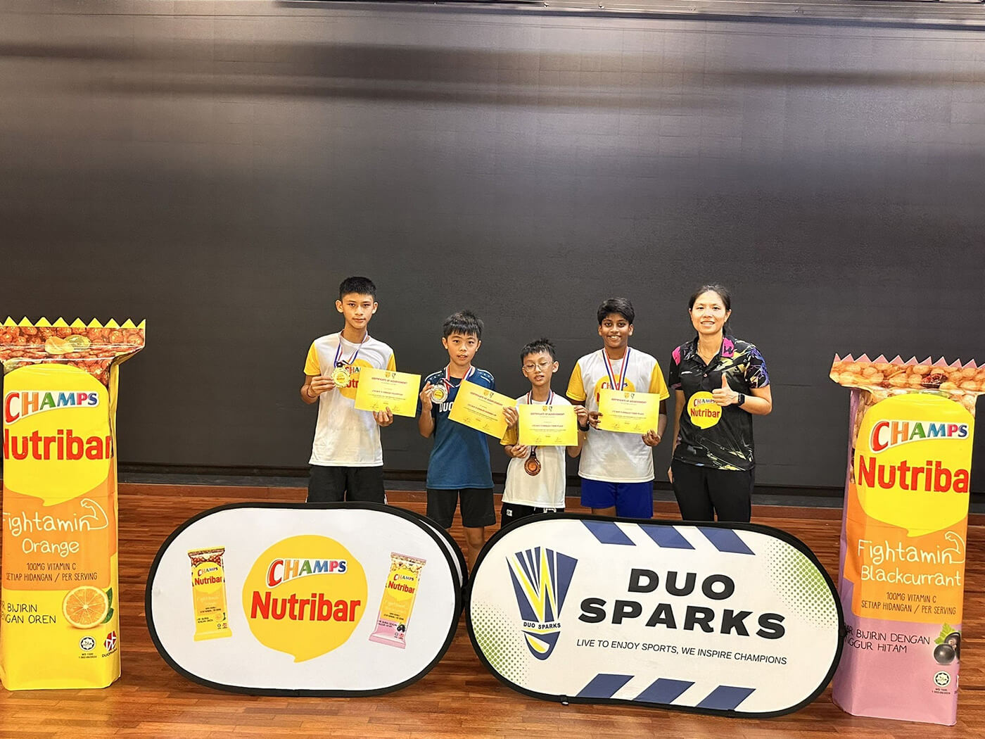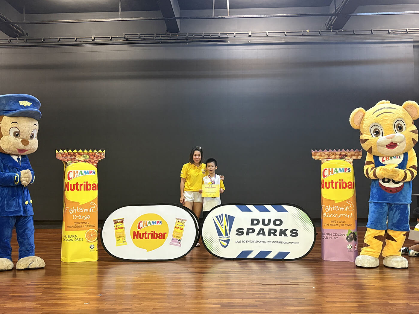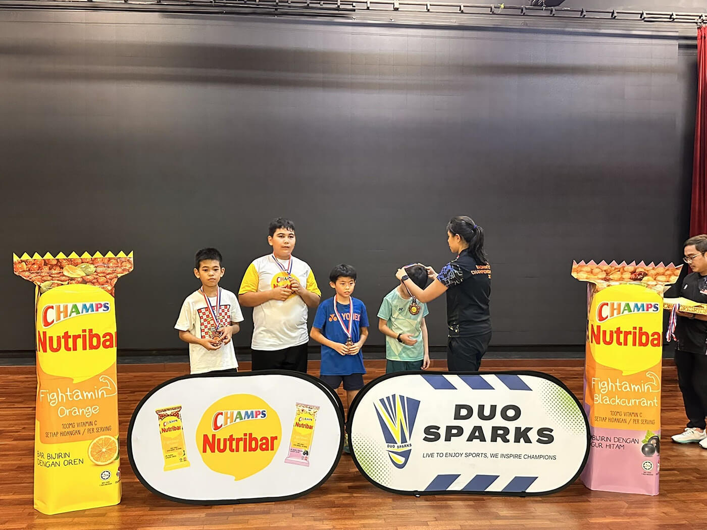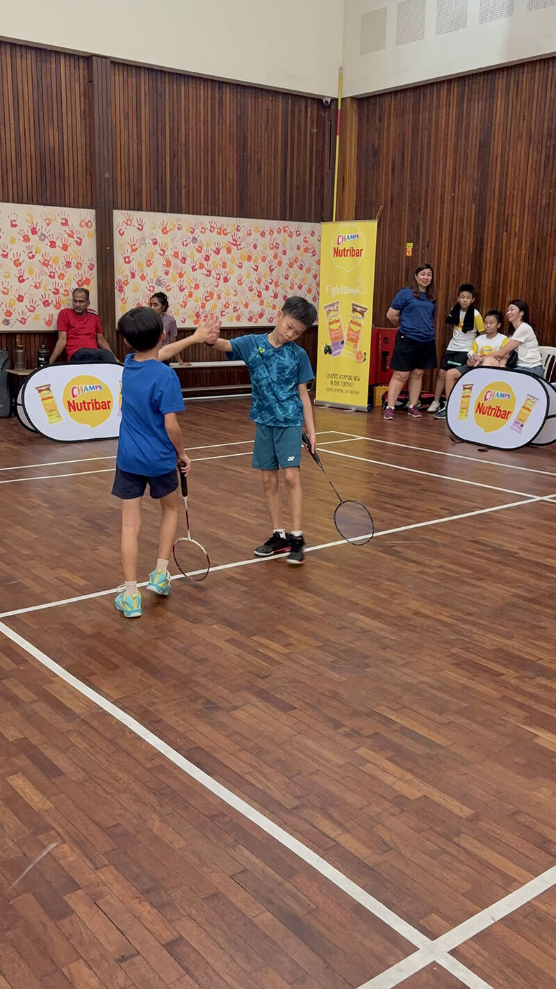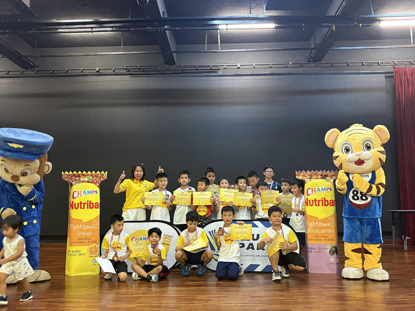 Participants competed across boys’ singles, boys’ doubles, and girls’ singles categories, with the top three winners in each proudly taking home medals and certificates of achievement. But the celebration didn’t stop there — every participant received an exclusive CHAMPS T-shirt and goodies bag, packed with CHAMPS Nutribar 25g x 6s (one box each of Blackcurrant and Orange), CHAMPS Vitamin C 100mg Orange Tablets (100s), all neatly packed into a reusable CHAMPS recycle bag.
